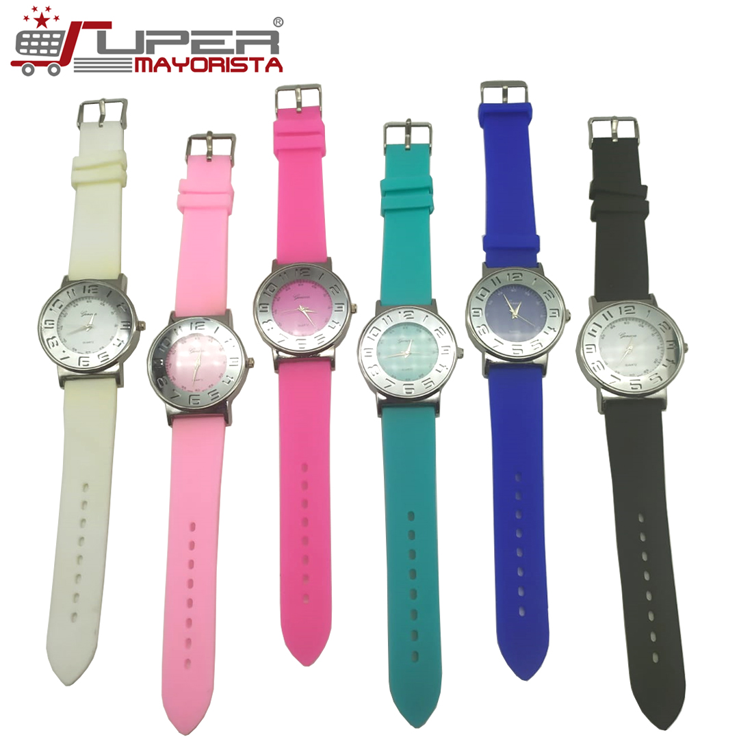 Reloj negro con color, material goma.